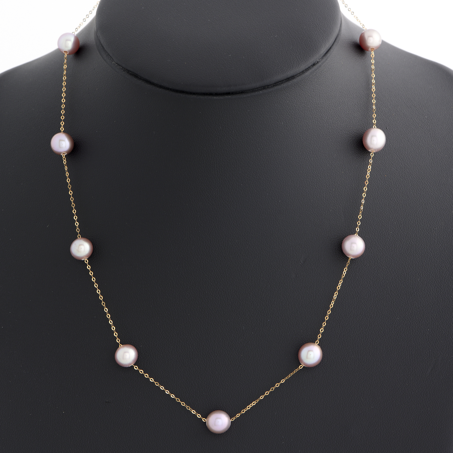 A PEARL NECKLACE IN 18CT GOLD, 450MM, 6.9GMS