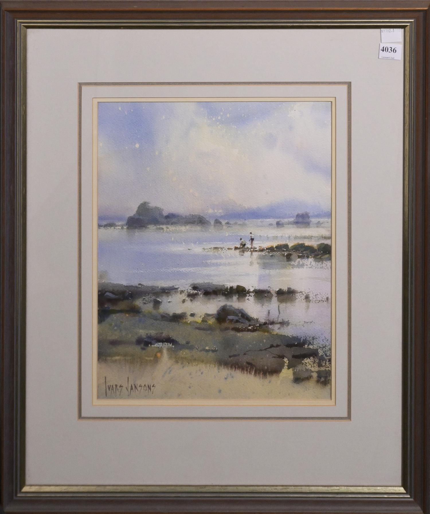 IVARS JANSONS, HOLIDAY AT PALM COVE, WATERCOLOUR, SIGNED LOWER LEFT, 33 X 26.5CM, FRAME SIZE: 58 X 50CM