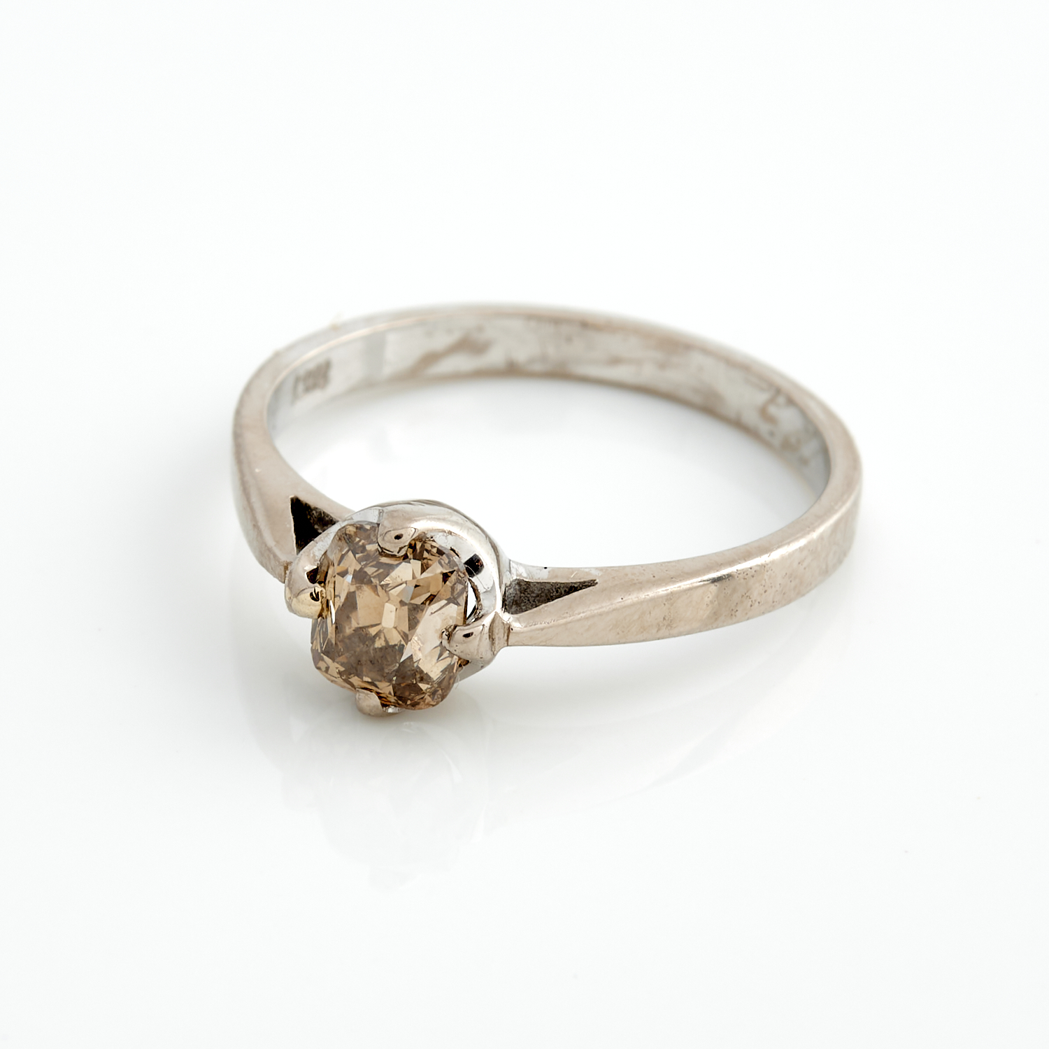 A COGNAC DIAMOND IN 18CT WHITE GOLD, SIZE N, 2.7GMS