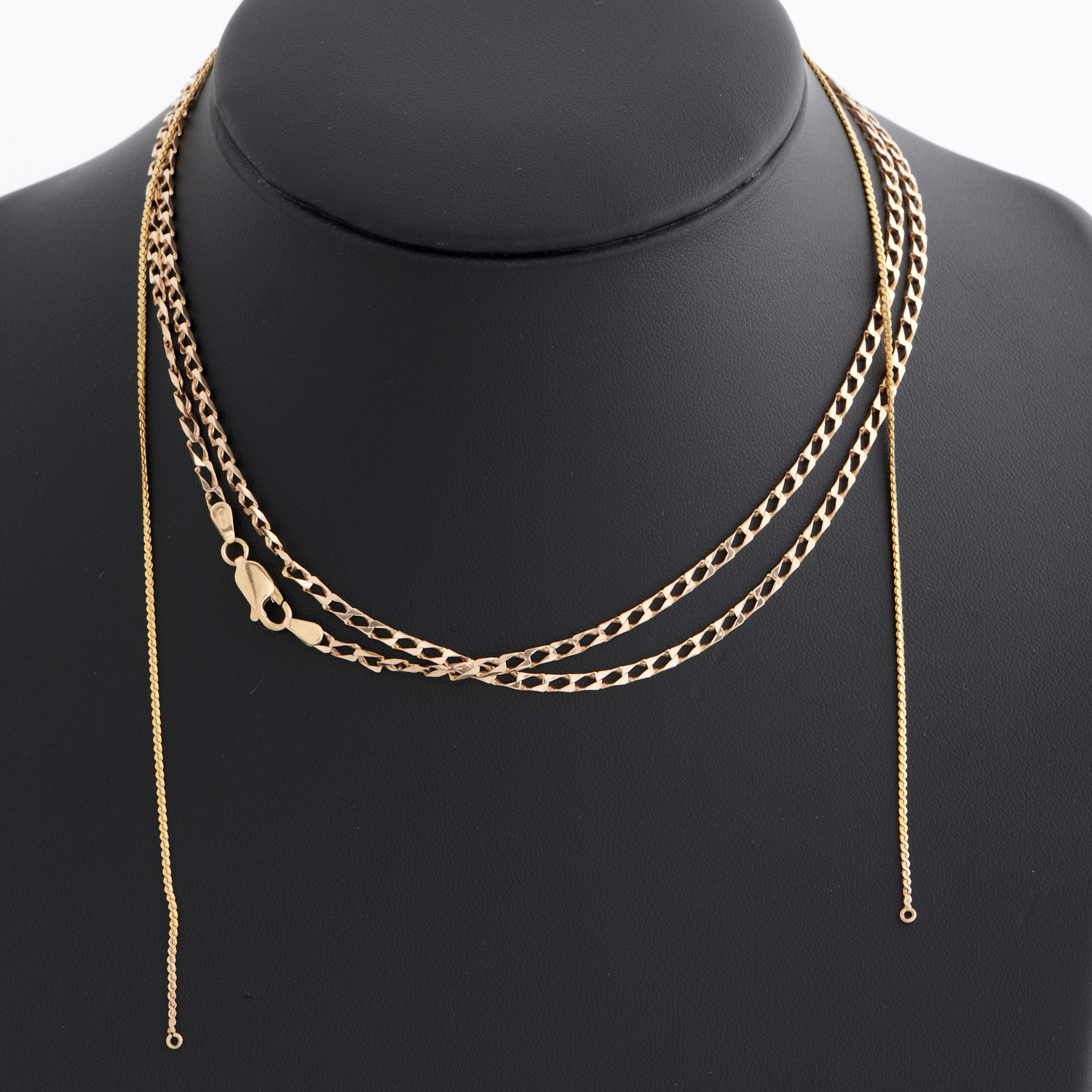 TWO CHAINS IN 9CT GOLD, 10.0GMS, A/F