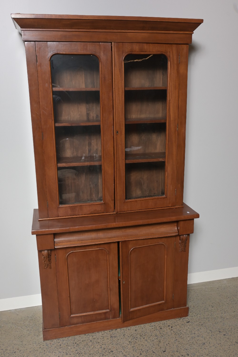 VICTORIAN MAHOGANY BOOKCASE CABINET (A/F) (201H X 108W X 40D CM) (PLEASE NOTE THIS 'HEAVY ITEM MUST BE REMOVED BY CARRIERS AT THE CUSTOMER'S EXPENSE. LEONARD JOEL STAFF CANNOT ASSIST CARRYING THIS ITEM) (X-LARGE)
