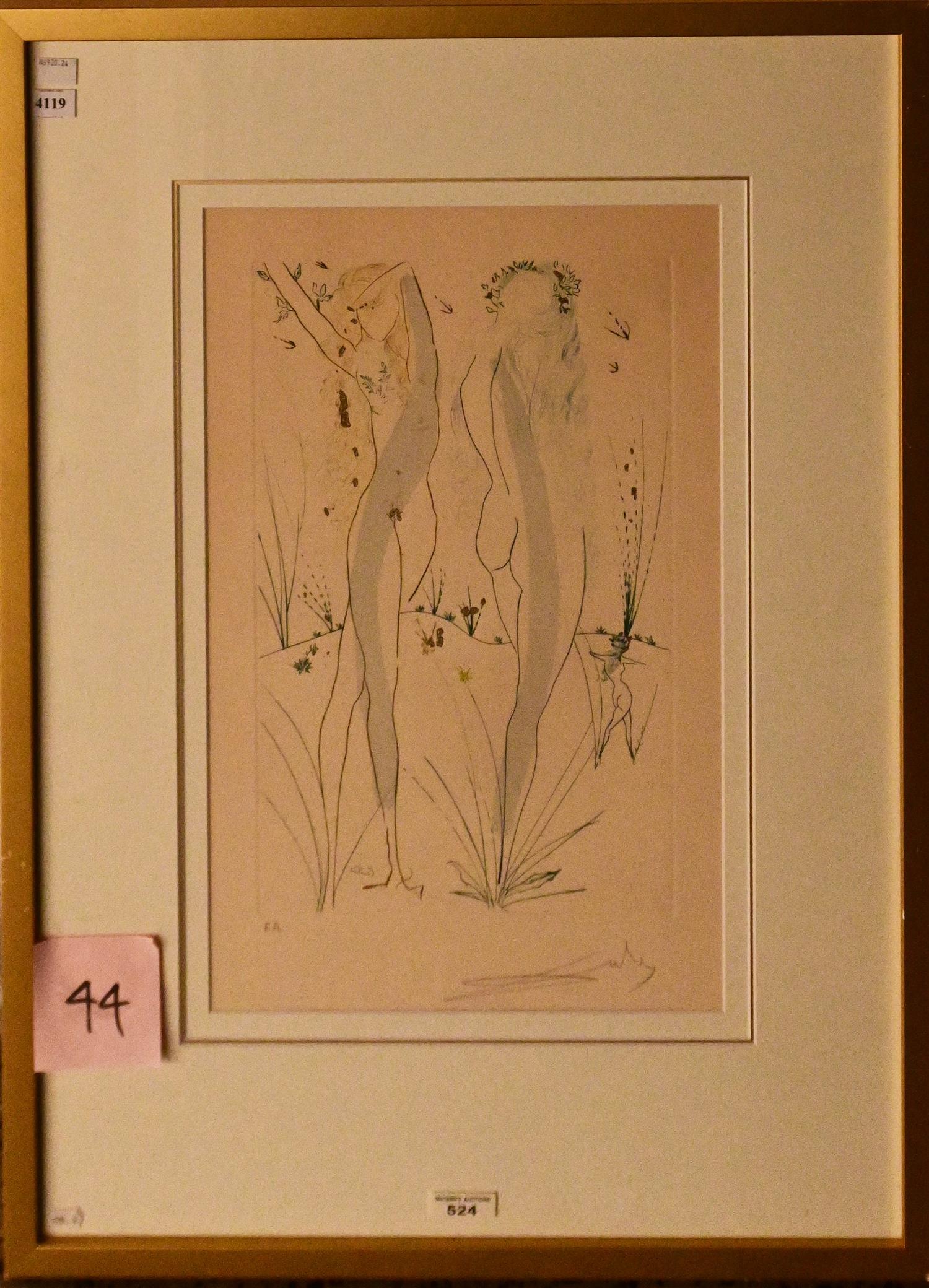 SALVADOR DALI, RETURN, RETURN, SHULAMITE, ETCHING ED. E/A, SIGNED AND EDITIONED BELOW IMAGE, 40 X 25CM (PLATE), FRAME SIZE: 78 X 57CM