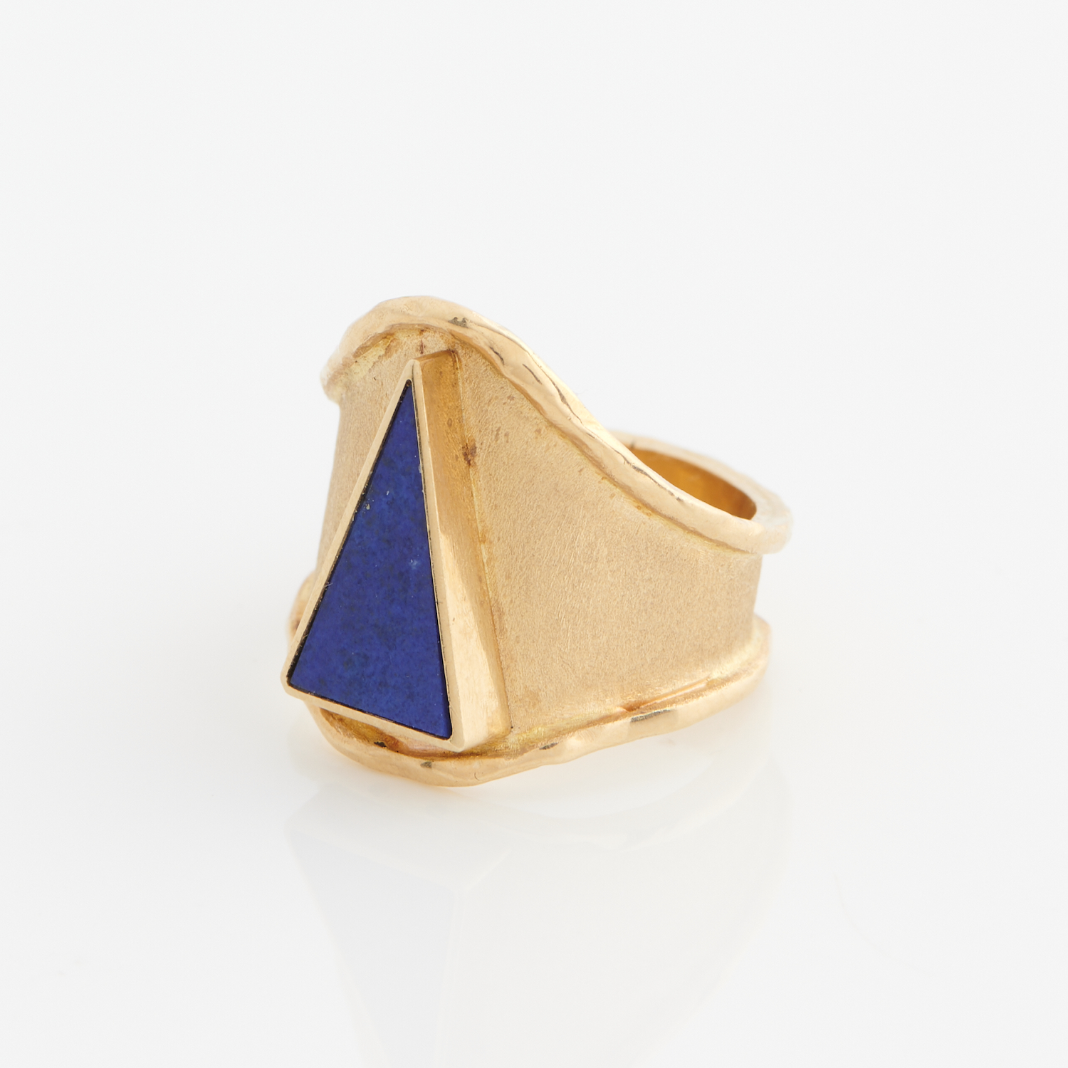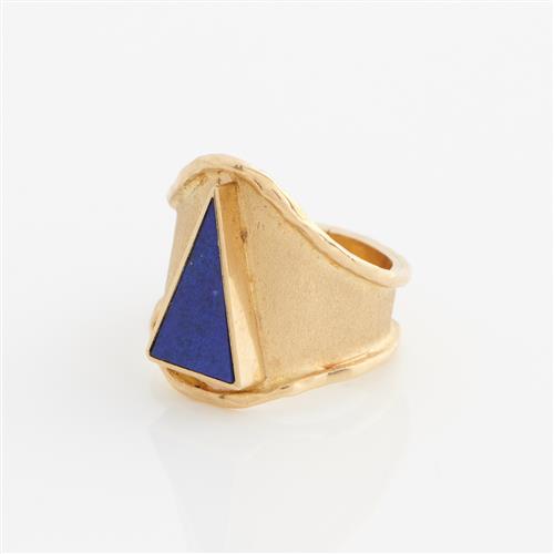 A LAPIS LAZULI SET RING IN 18CT GOLD, SIZE J 1/2, 7.5GMS
