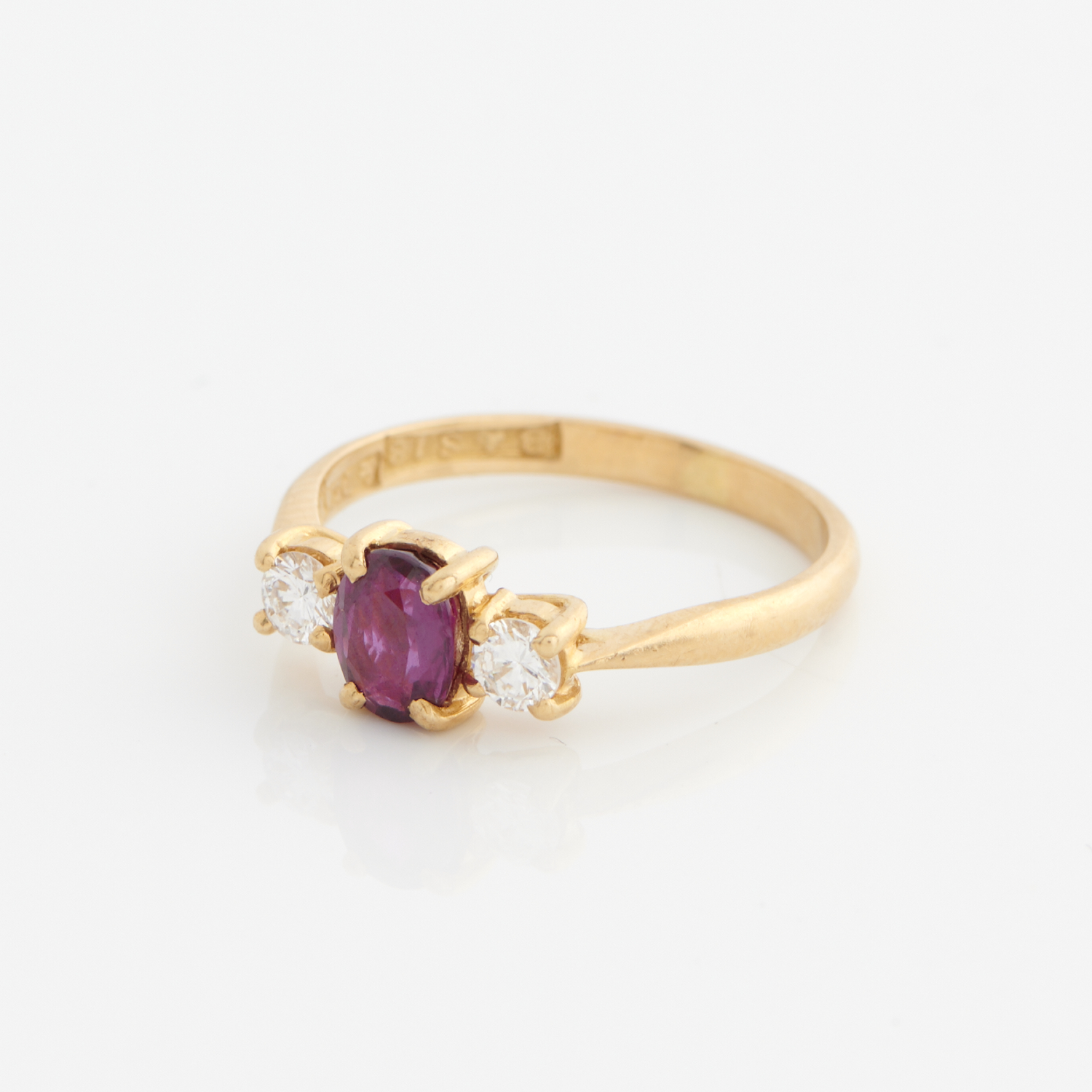 A RUBY AND DIAMOND RING IN 18CT GOLD, SIZE I, 2.1GMS