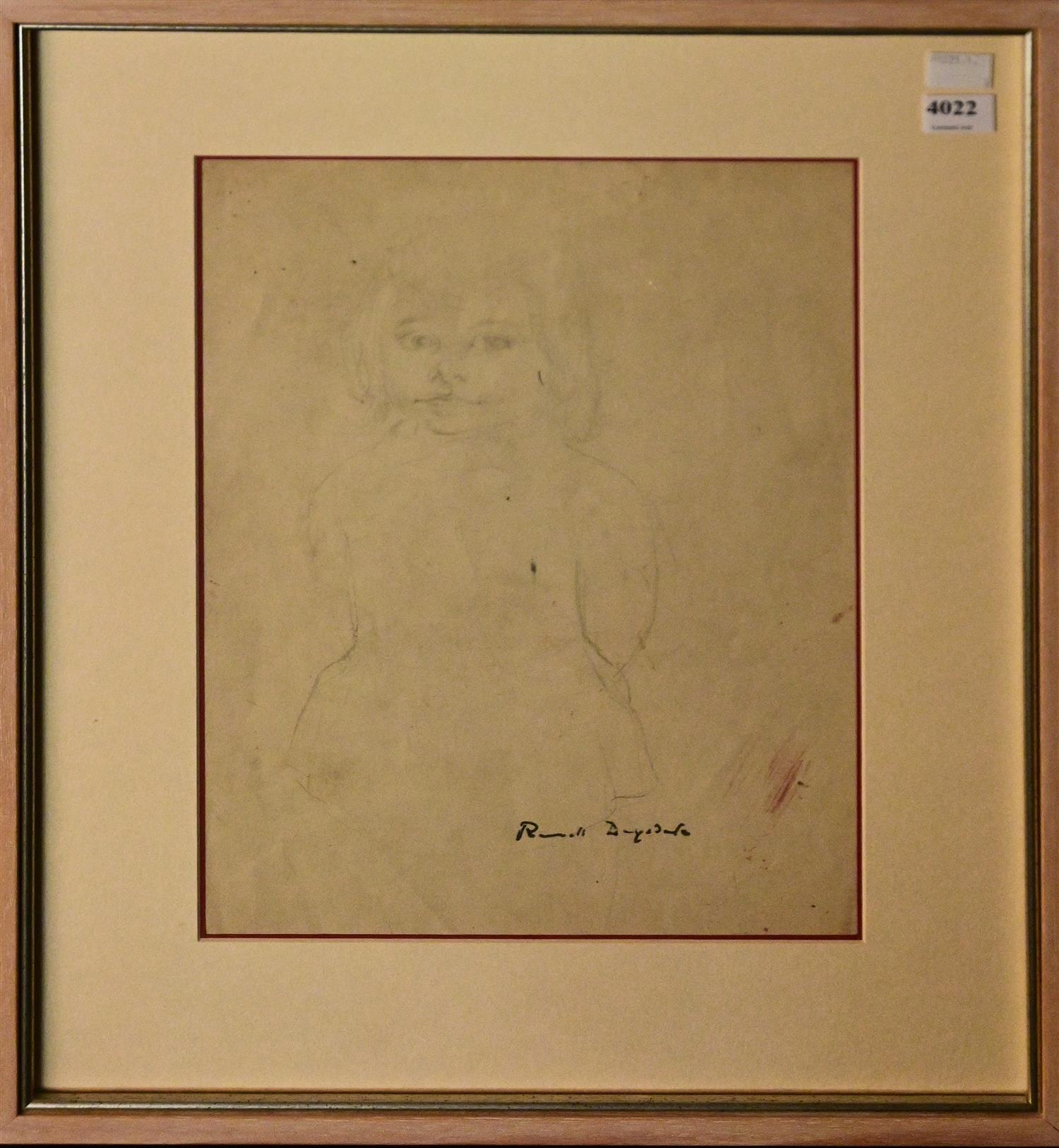RUSSELL DRYSDALE, PORTRAIT OF A GIRL, PENCIL ON PAPER, SIGNED LOWER RIGHT, 35 X 23CM, FRAME SIZE: 52 X 39CM
