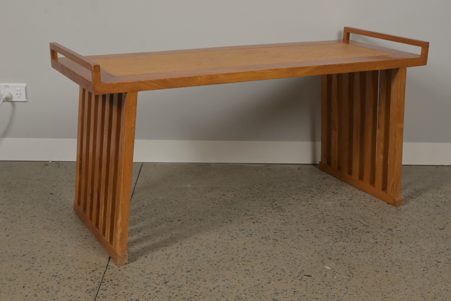 A CHINESE ELM BENCH WITH WEBBED TOP (61H X 121W X 46D CM) (LEONARD JOEL DELIVERY: LARGE)