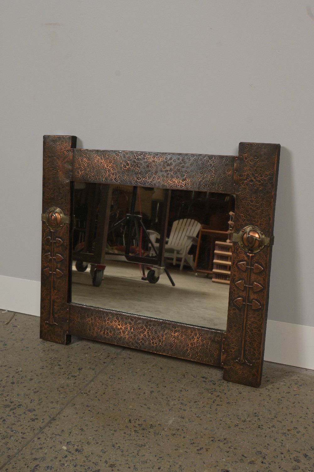 AN ARTS AND CRAFTS COPPER-FRAMED WALL MIRROR (50H X 56W CM) (LEONARD JOEL DELIVERY: MEDIUM)