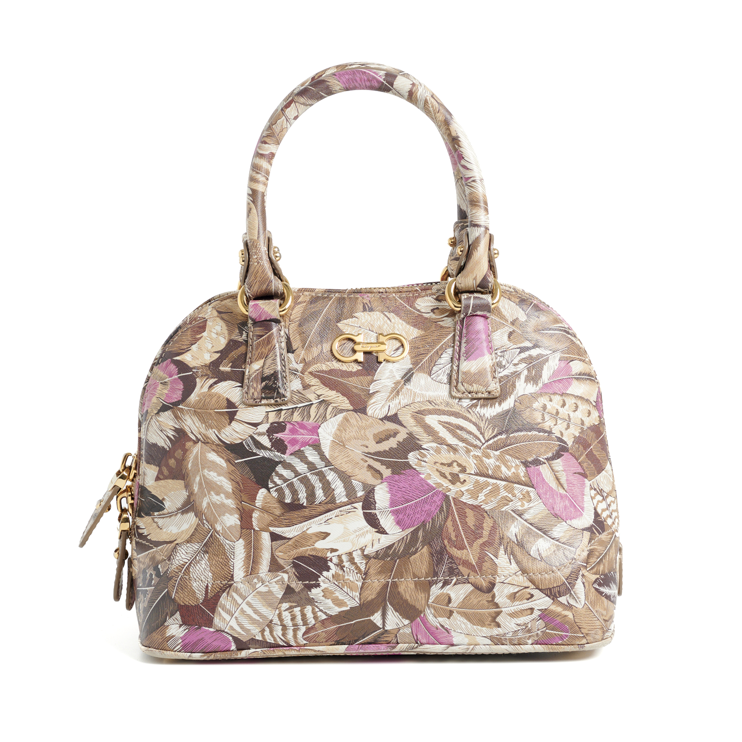 SALVATORE FERRAGAMO, A HANDBAG STYLED FEATURING FOLIATE PRINT WITH GOLD TONE HARDWARE, 20 X 25.5 X 12.5CM