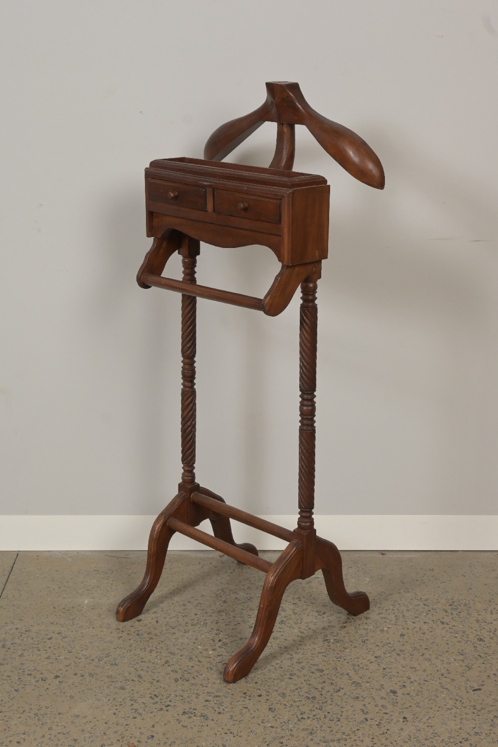 A MAHOGANY VALET STAND WITH TWO DRAWERS 123H X 52W X 48D (LEONARD JOEL DELIVERY: LARGE)