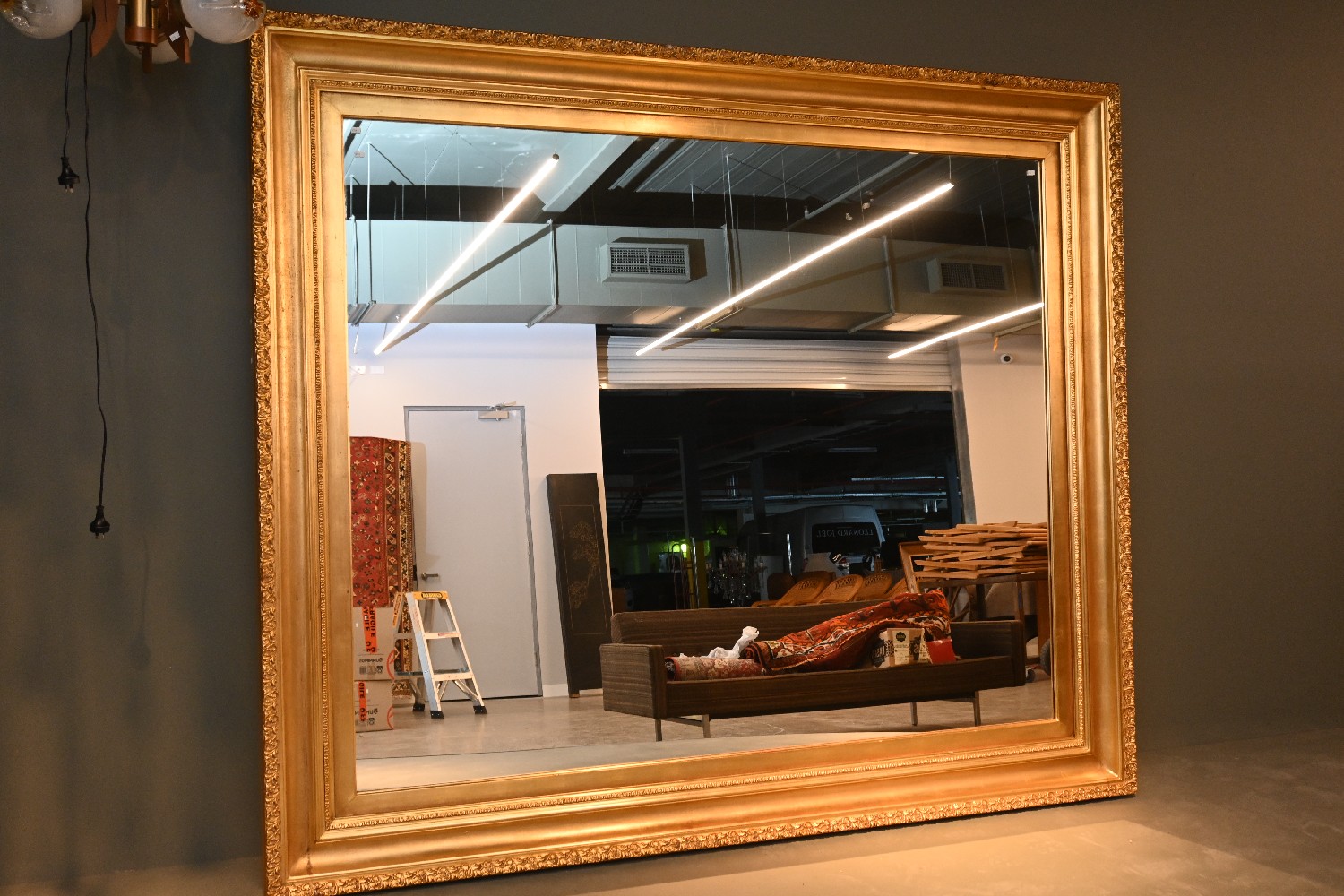 A SUBSTANTIAL RECTANGULAR GILTWOOD MIRROR (198H X 238W X 12D CM) (THIS HEAVY ITEM MUST BE REMOVED BY CARRIERS AT THE CUSTOMER'S EXPENSE. LEONARD JOEL STAFF CANNOT ASSIST CARRYING THIS ITEM) (X-LARGE)