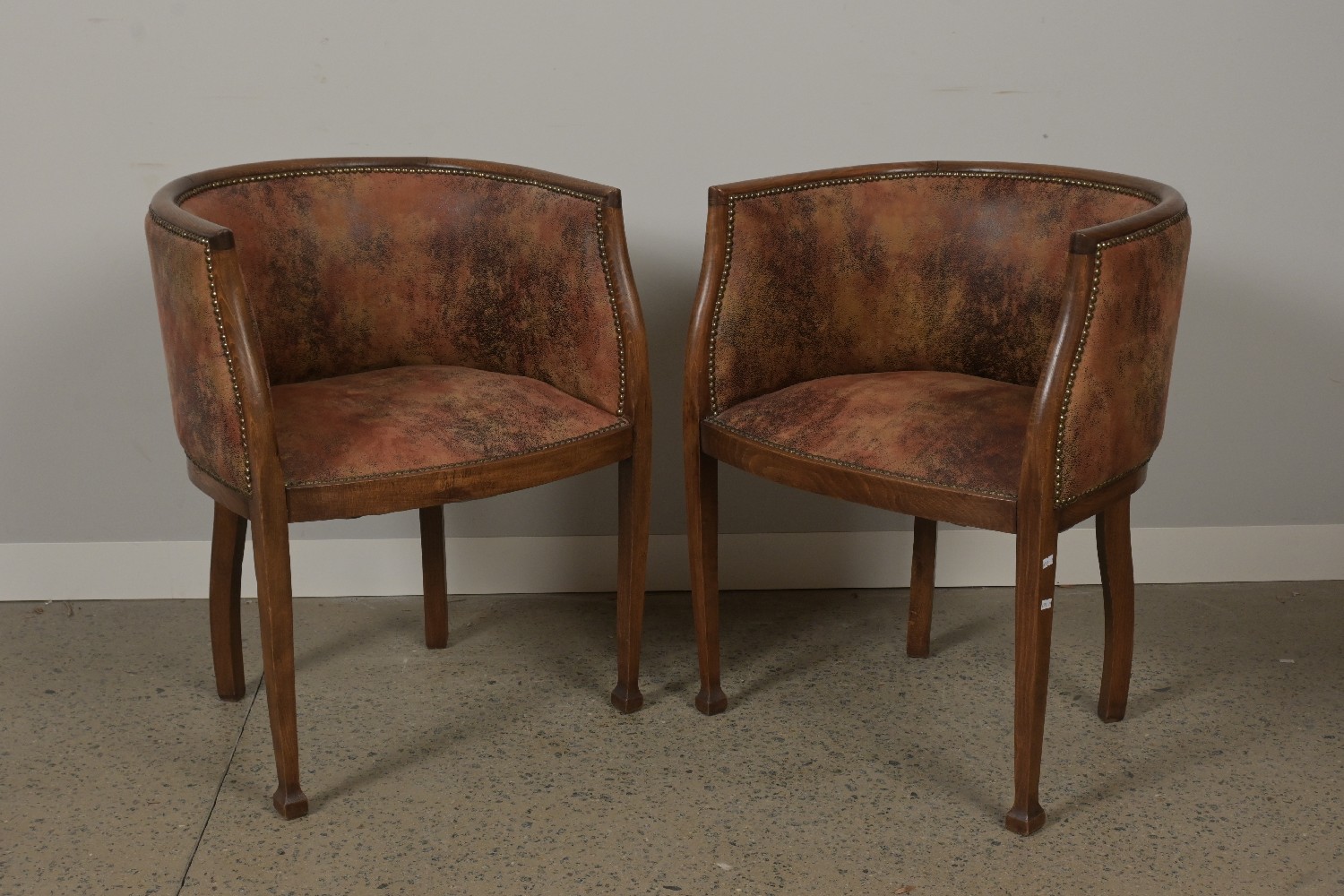 A PAIR OF LEATHER SUEDE UPHOLSTERED CHAIRS (78H X 63W X 52D CM) (LEONARD JOEL DELIVERY: LARGE)