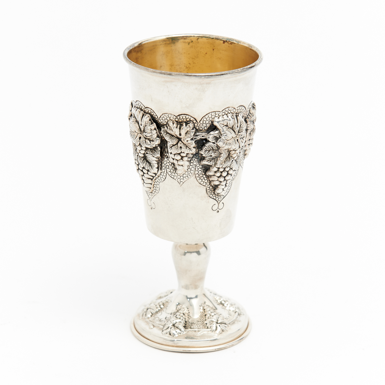 A JUDAICA HAZOFIM STERLING SILVER GOBLET (925) W.118G H.14CM, LEONARD JOEL DELIVERY SIZE: SMALL