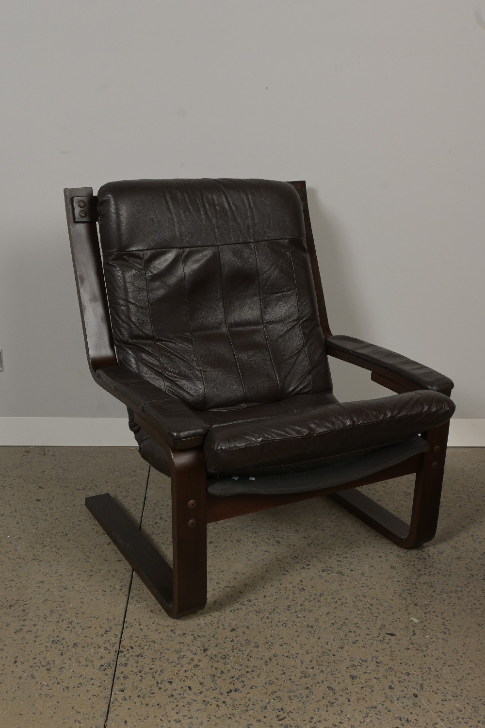 A MID-CENTURY LEATHER UPHOLSTERED CANTILEVER ARMCHAIR (92HX 77W X 83D CM) (LEONARD JOEL DELIVERY: LARGE)