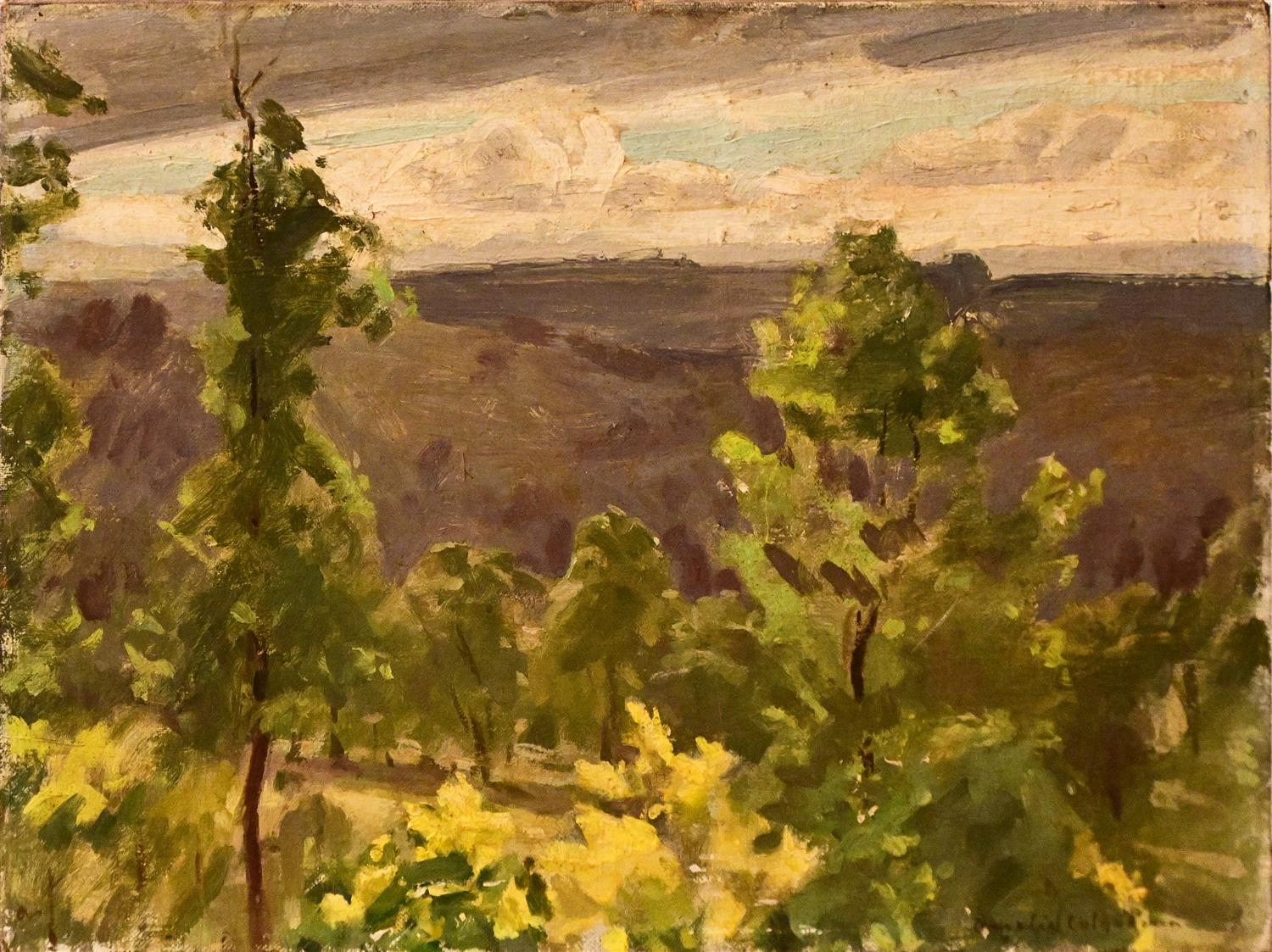 AMALIE COLQUHOUN, (LANDSCAPE), OIL ON CANVASBOARD, SIGNED LOWER RIGHT, 30.5 X 40.5CM
