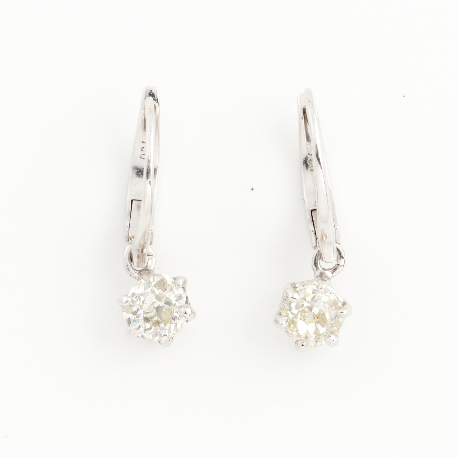 A PAIR OF DIAMOND DROP EARRINGS IN 18CT WHITE GOLD, THE OLD EUROPEAN CUT DIAMONDS TOTALLING 1.74CT, (H-I, SI) TO HOOK FITTINGS, 22MM, ACCOMPANIED WITH VALUATION