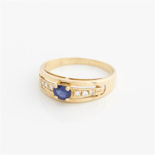 A SAPPHIRE AND DIAMOND RING IN 18CT GOLD, SIZE O, 3.1GMS