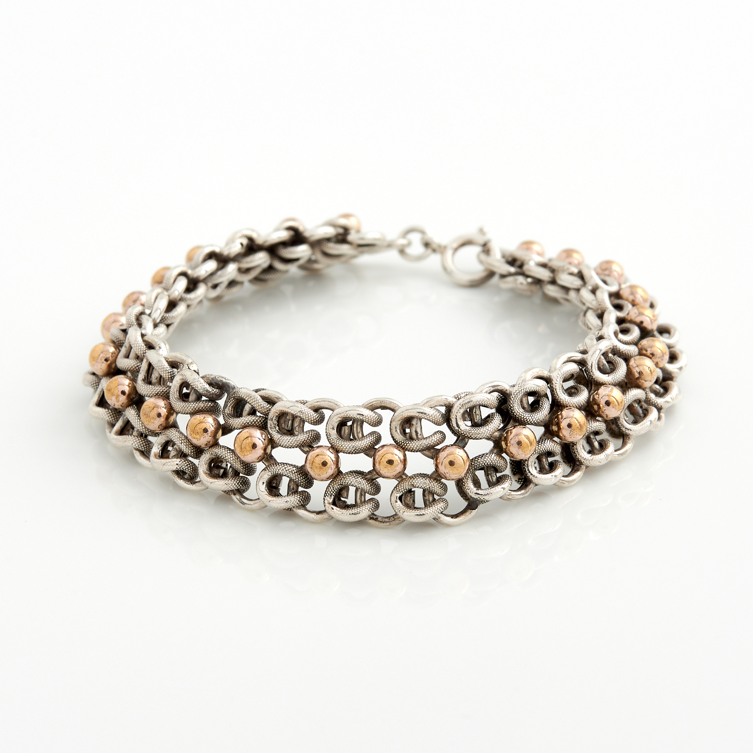 A FRENCH FANCY LINK BRACELET IN SILVER AND SILVER GILT, 200MM, 22.9GMS