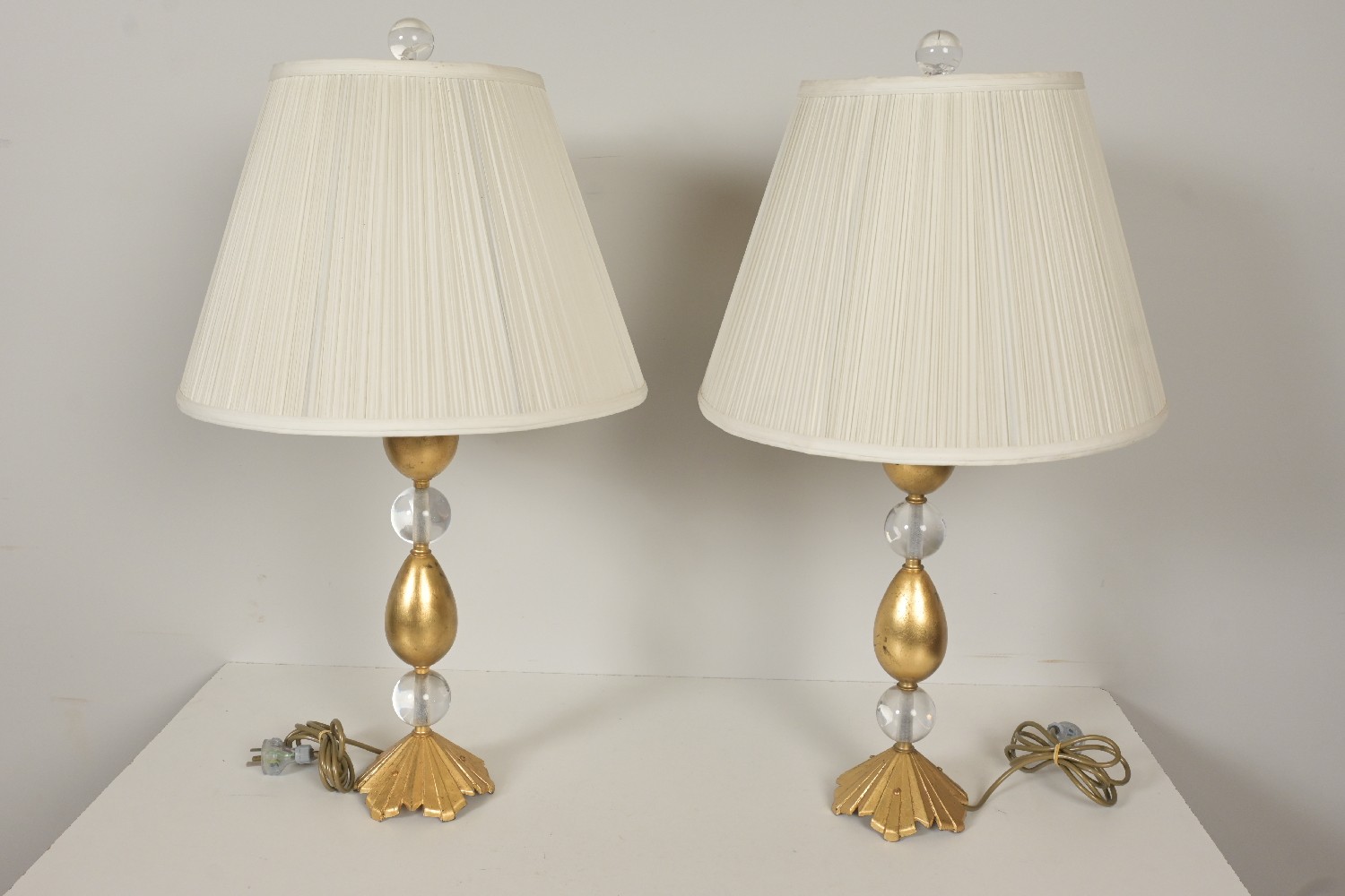 A PAIR OF GILT AND PERSPEX TABLE LAMPS (A/F) (85H X 46D) (LEONARD JOEL DELIVERY: LARGE)
