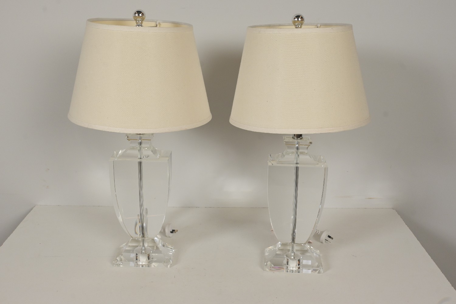 A PAIR OF HEAVY GLASS TABLE LAMPS (67H X 55DIA CM) (LEONARD JOEL DELIVERY: LARGE)