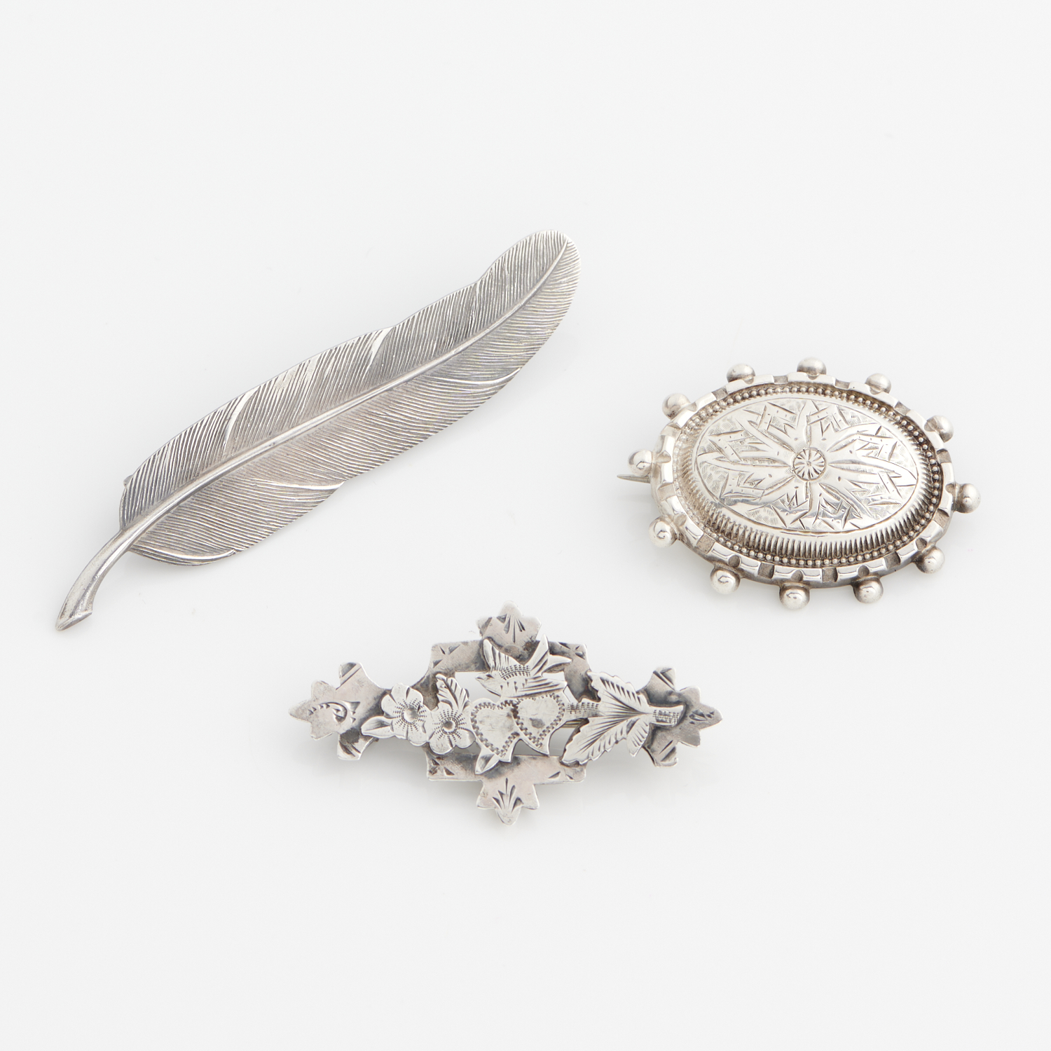 A COLLECTION OF THREE VINTAGE BROOCHES IN SILVER