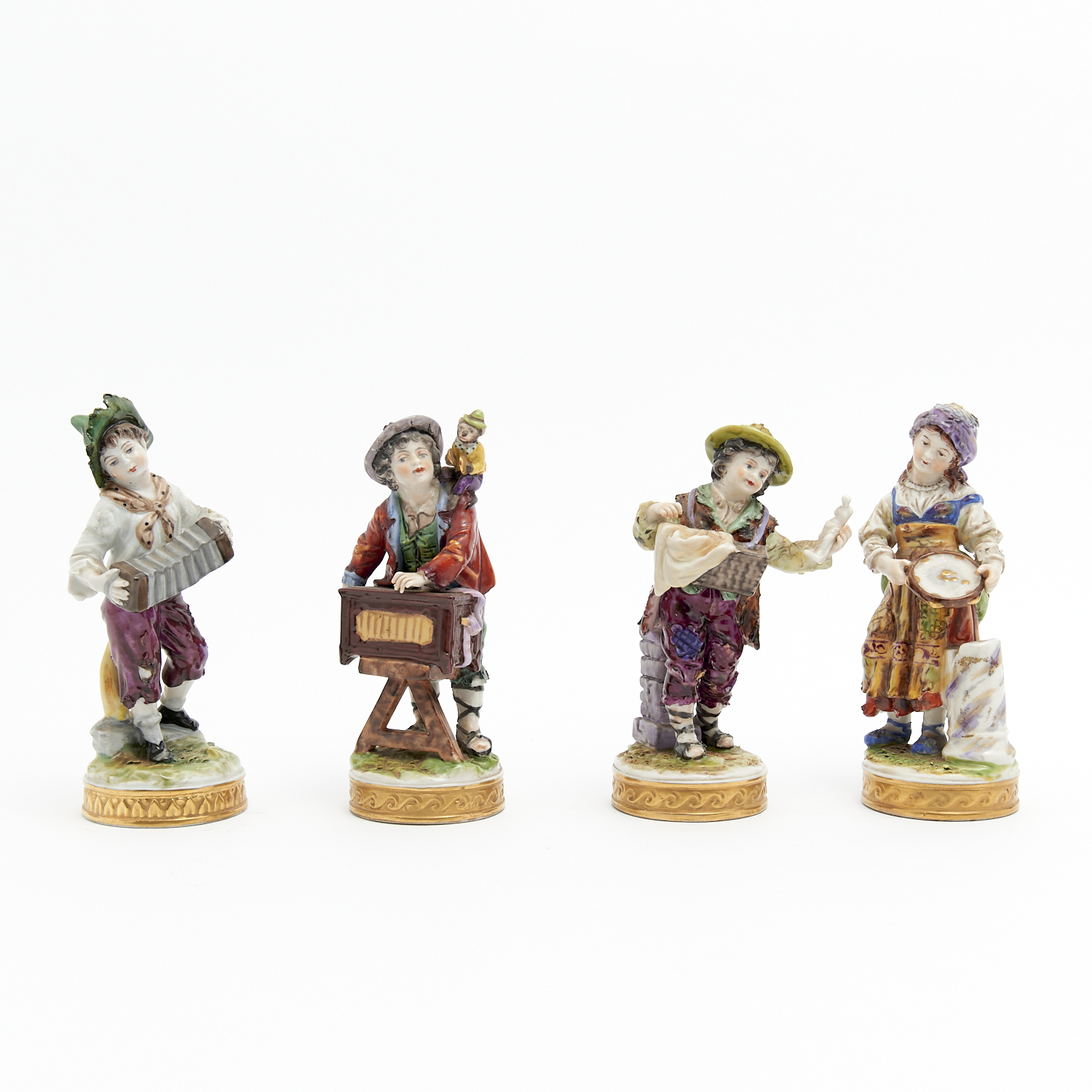 FOUR GERMAN PORCELAIN CHILDREN FIGURES H.15CM (TALLEST), LEONARD JOEL DELIVERY SIZE: SMALL
