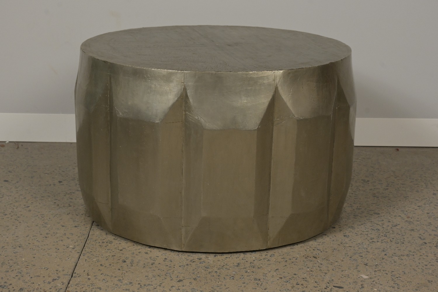 SILVERED DRUM SIDE SABLE (45H X 71DIA CM) (LEONARD JOEL DELIVERY: X-LARGE)