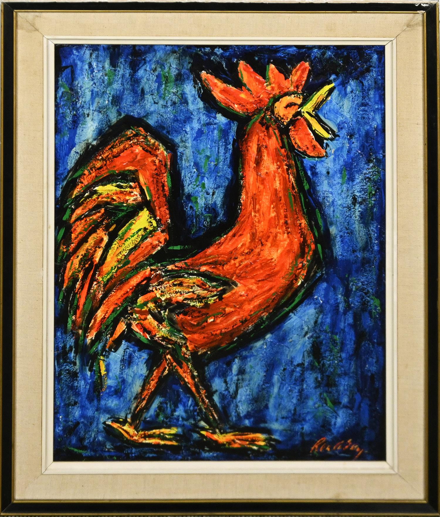 BERNARD HESLING, (ROOSTER), OIL ON CARD, SIGNED LOWER RIGHT, 48.5 X 34.5CM, FRAME SIZE: 60 X 45.5CM