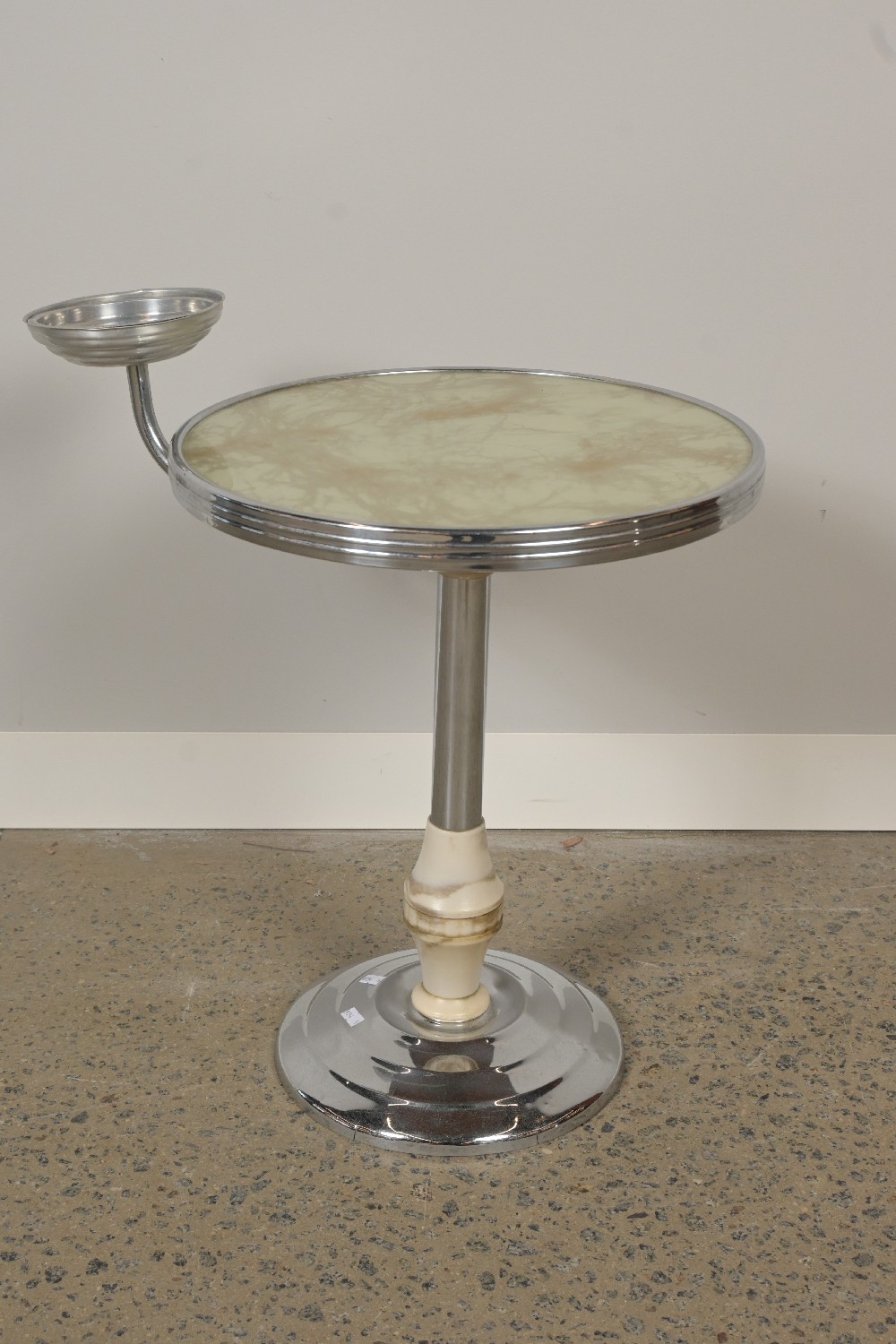 AN ART DECO CHROME AND BAKELITE SMOKERS TABLE (A/F) 56H X 41W X 56D (LEONARD JOEL DELIVERY: LARGE)