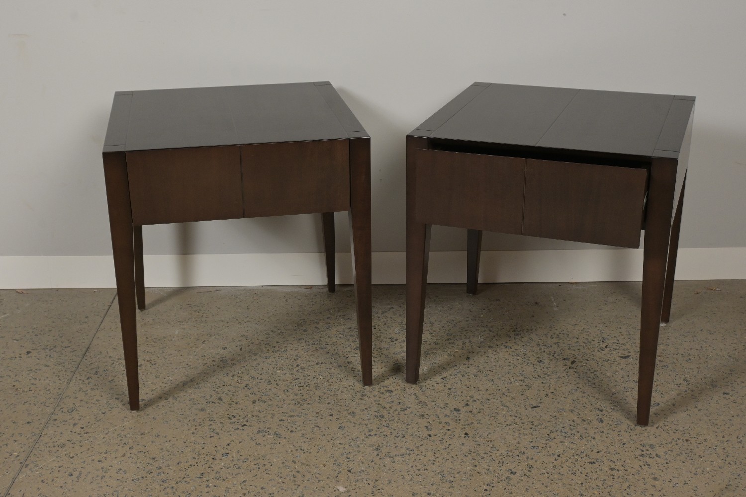 A PAIR OF CONTEMPORARY BEDSIDE TABLES WITH SINGLE DRAWER (61H X 55W X 55D CM) (LEONARD JOEL DELIVERY: X-LARGE)