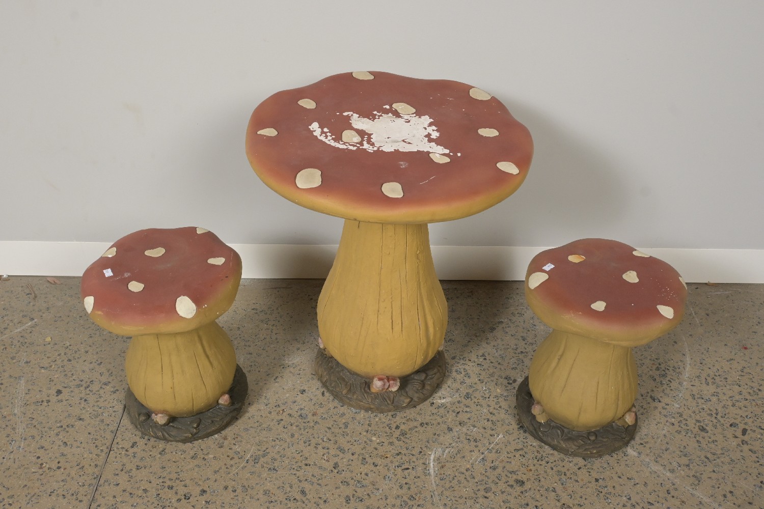THREE DECORATIVE TOADSTOOLS (57H X 49DIA CM) (LEONARD JOEL DELIVERY: LARGE)