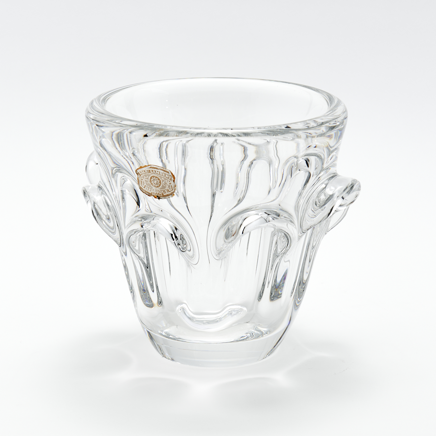 A LARGE VAL ST LAMBERT CLEAR GLASS VASE WITH ORIGINAL FOIL LABEL H.18.5CM, LEONARD JOEL DELIVERY SIZE: MEDIUM