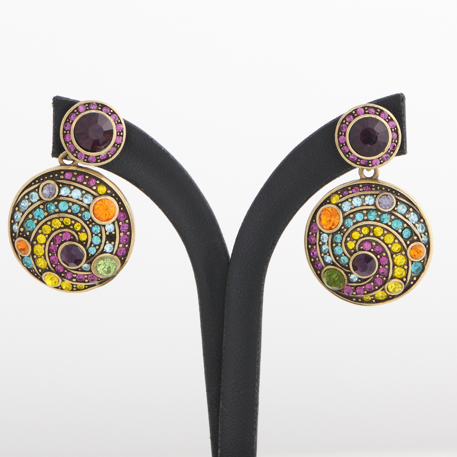 HEIDI DAUS, A PAIR OF GEM SET EARRINGS IN BASE METAL TO POST FITTINGS, 42 X 26MM