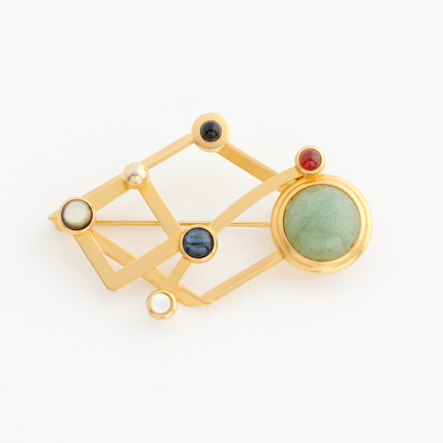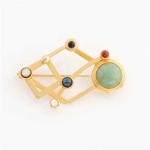 G N BUONANNO, A HARDSTONE SET BROOCH IN GOLD PLATE, 45 X 65MM
