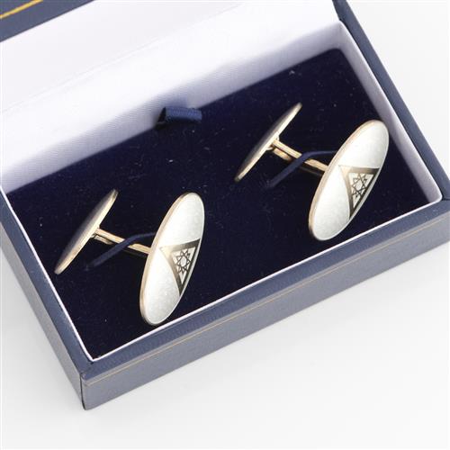 A PAIR OF DANISH ENAMELLED SILVER GILT CUFFLINKS, 25MM X 12MM, BOXED
