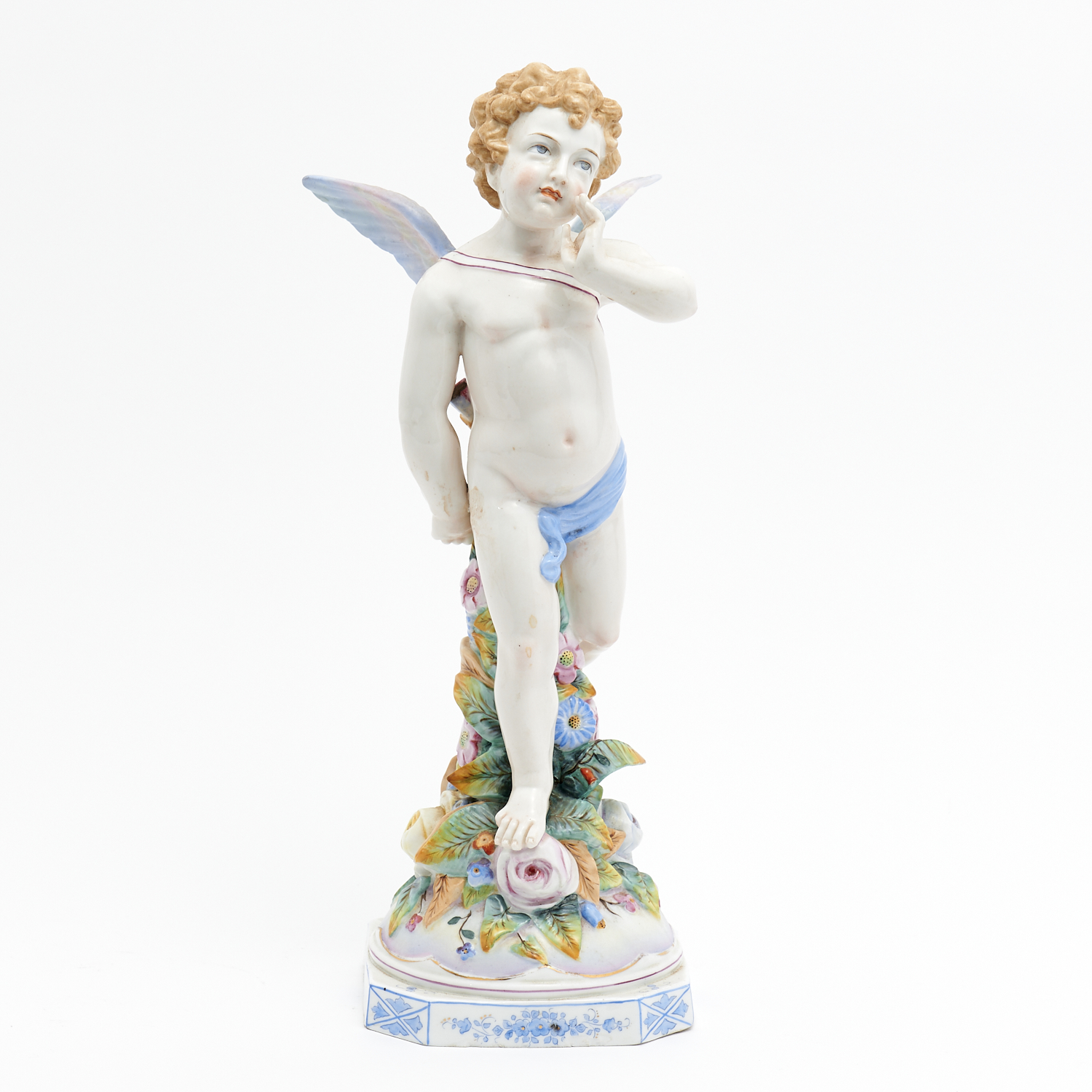 A LARGE GERMAN PORCELAIN CUPID FIGURE (A/F) H.34.5CM, LEONARD JOEL DELIVERY SIZE: MEDIUM