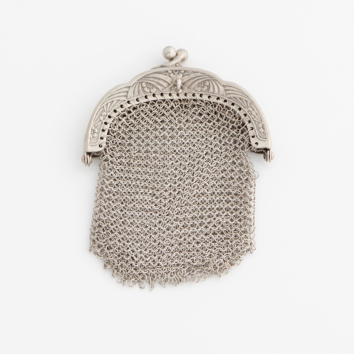 A VINTAGE FRENCH MESH PURSE IN SILVER, 75 X 55MM