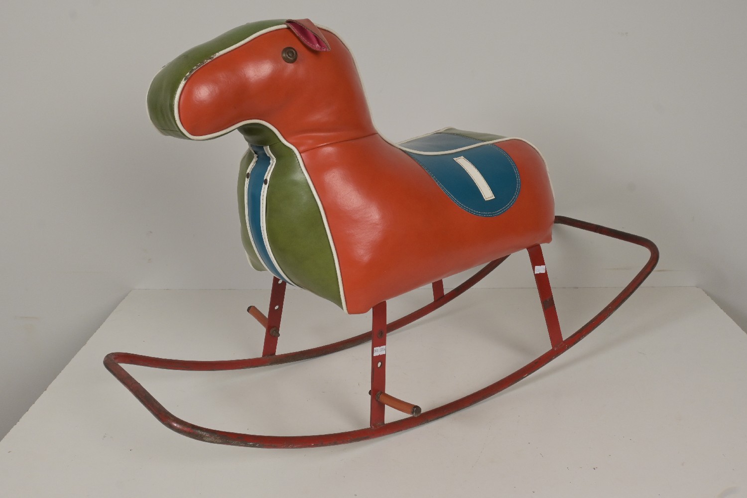 A VINTAGE RJ JENKINS, VINYL ROCKING HORSE (59H X 44W X 95D CM) (LEONARD JOEL DELIVERY: LARGE)