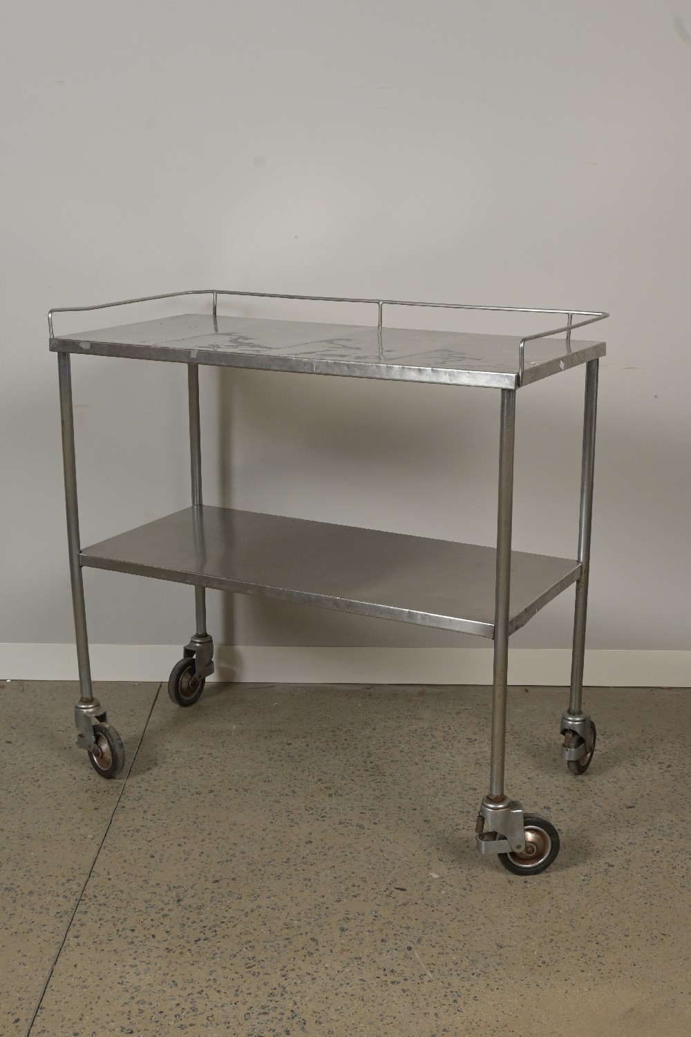 A LARGE STAINLESS STEEL TWO TIER HOSPITAL/SERVING UNIT (A/F) (101H X 104W X 51D CM) (LEONARD JOEL DELIVERY: X-LARGE)