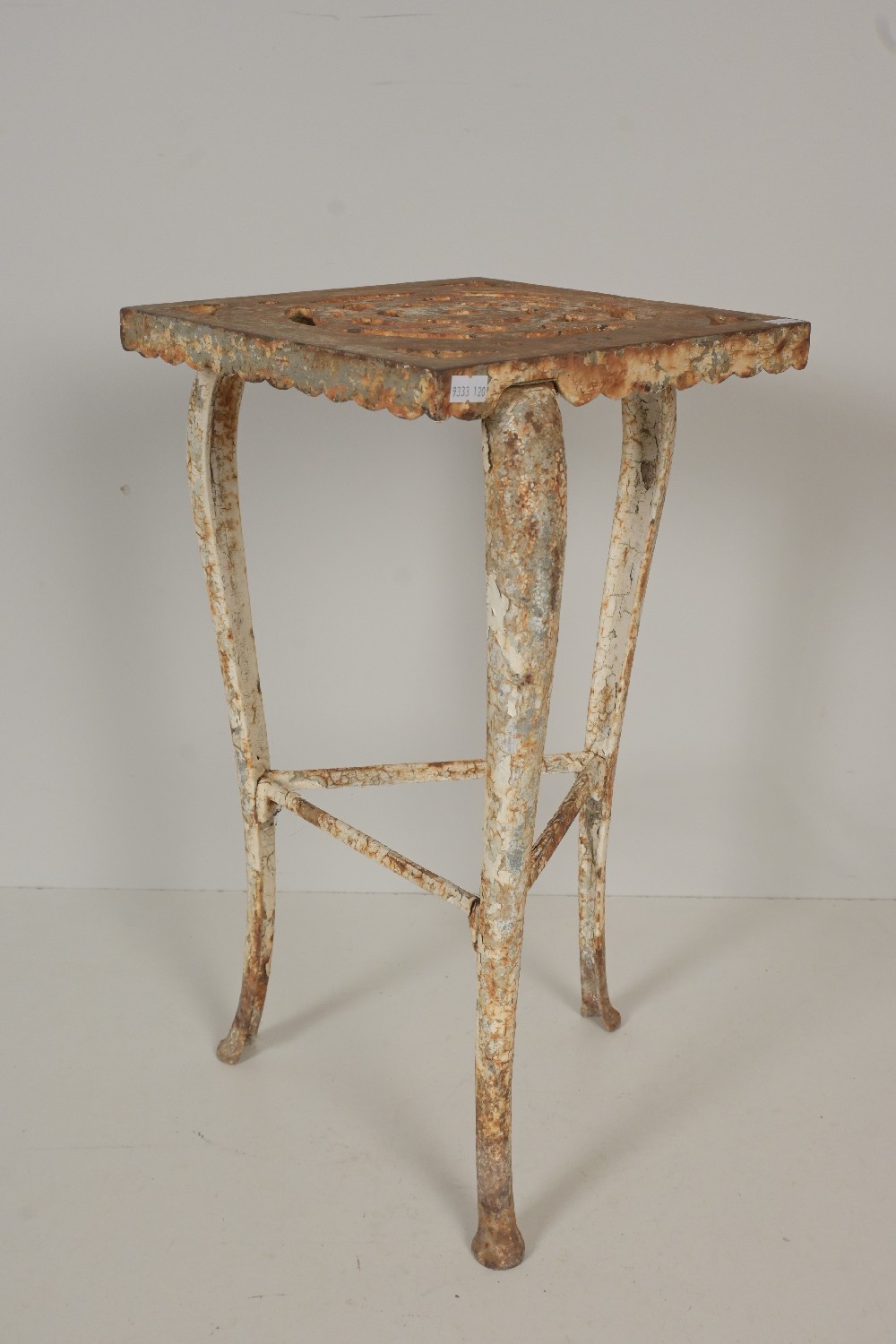 A THREE LEGGED SQUARE TOP POT PLANT STAND (A/F) (53H X 32DIA CM) (LEONARD JOEL DELIVERY: LARGE)