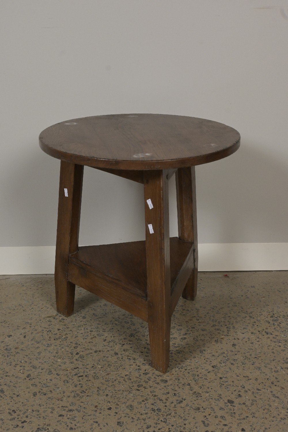 AN OAK CRICKET TABLE (56H X 51DIA CM) (LEONARD JOEL DELIVERY: LARGE)'