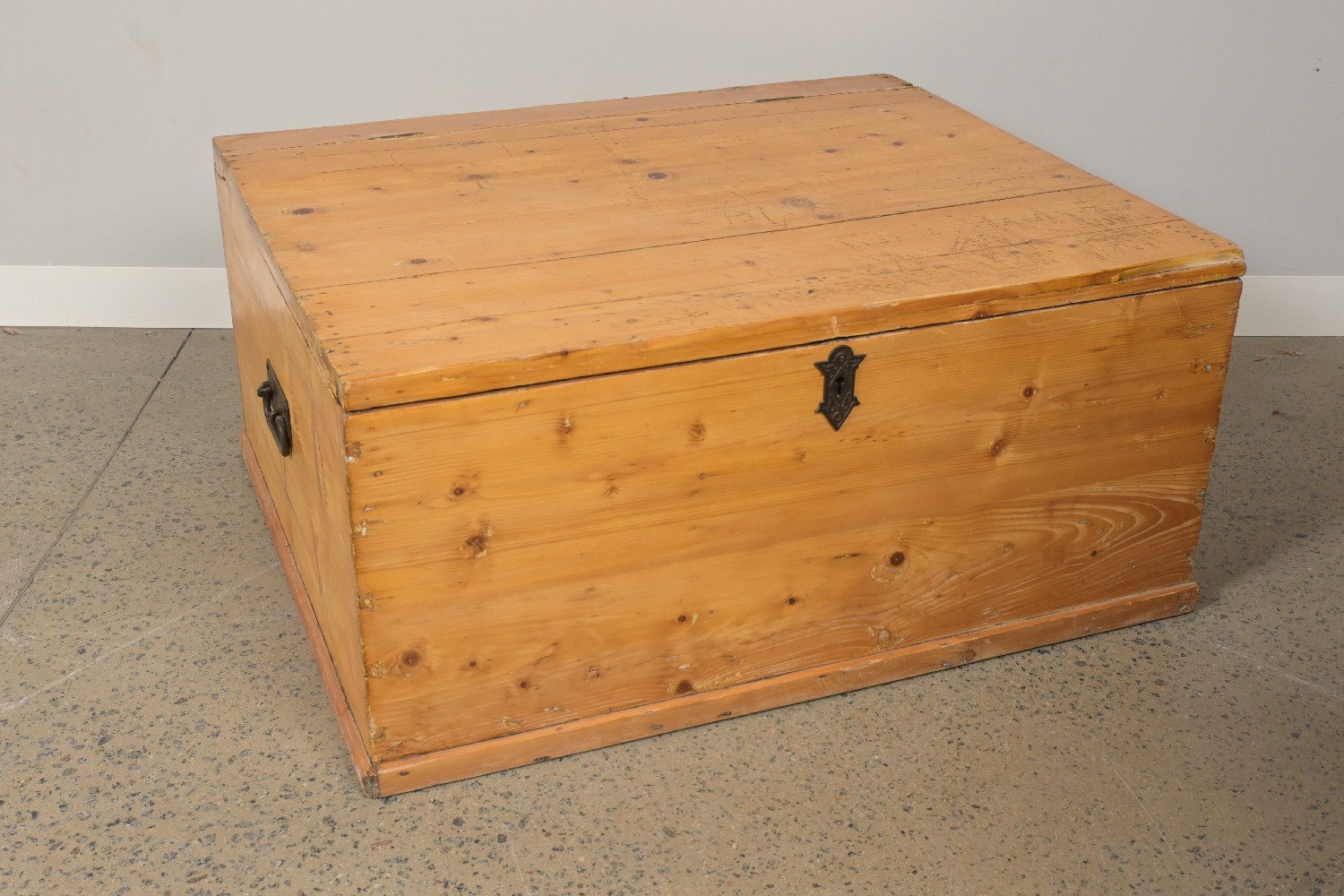 A LARGE BALTIC PINE CHEST WITH DOVETAILED JOINERY (A/F) (44H X 95W X 80D CM) (LEONARD JOEL DELIVERY: X-LARGE)