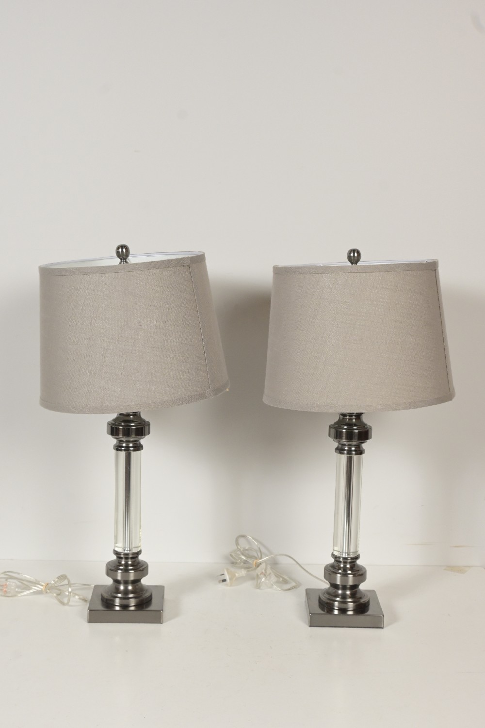 A PAIR OF PERSPEX & CHROME EFFECT TABLE LAMPS (72H X 36DIA CM) (LEONARD JOEL DELIVERY: LARGE)