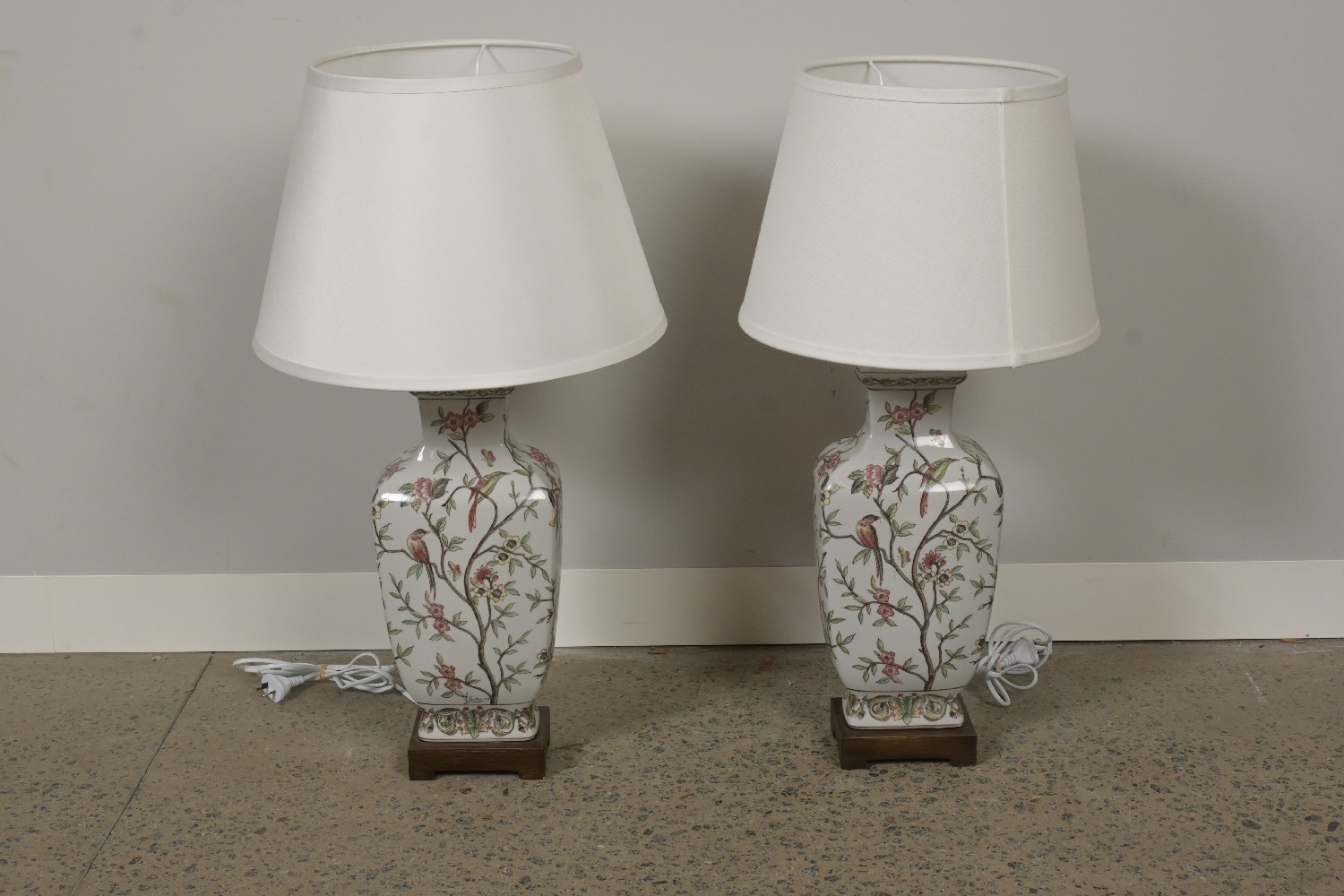 A PAIR OF CERAMIC FLORAL DESIGN TABLE LAMPS (74H X 36DIA CM) (LEONARD JOEL DELIVERY: LARGE)