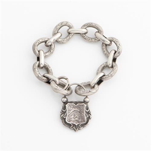 AN ANTIQUE CURB LINK BRACELET IN SILVER, APPROXIMATELY 180MM