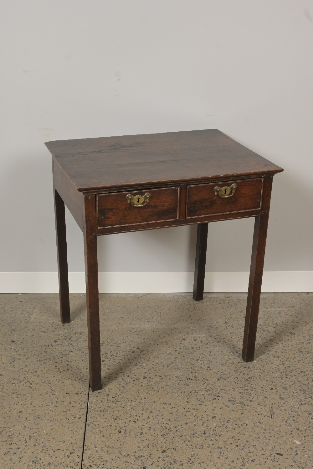 A GEORGE III OAK TWO DRAWER SIDE TABLE (74H X 68W X 54D CM) (LEONARD JOEL DELIVERY: X-LARGE)