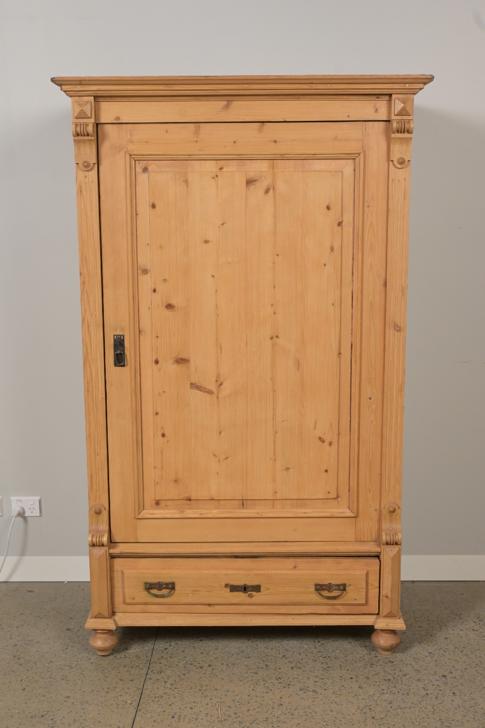 AN ANTIQUE STYLE PINE SINGLE DOOR CABINET (A/F) (176H X 106W X 54D CM) (PLEASE NOTE THIS HEAVY ITEM MUST BE REMOVED BY CARRIERS AT THE CUSTOMER'S EXPENSE. LEONARD JOEL STAFF CANNOT ASSIST CARRYING THIS ITEM) (X-LARGE)
