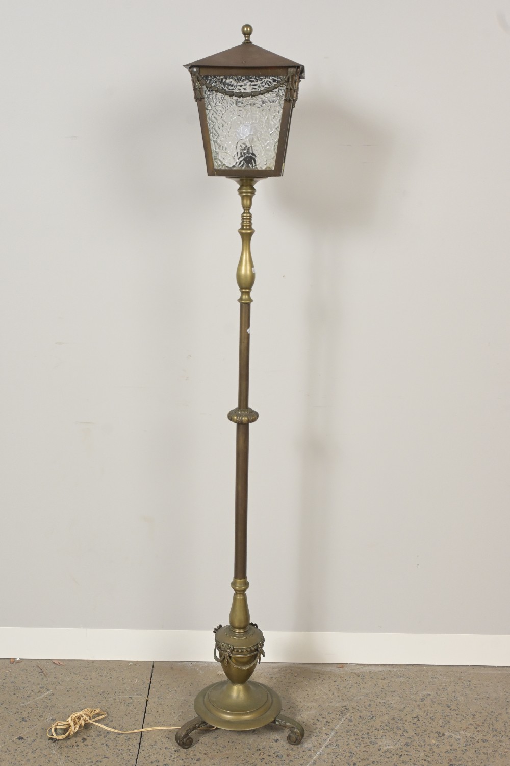A STREETPOST FORM BRONZE & GLASS STANDARD LAMP (175H X 35DIA CM) (LEONARD JOEL DELIVERY: X-LARGE)