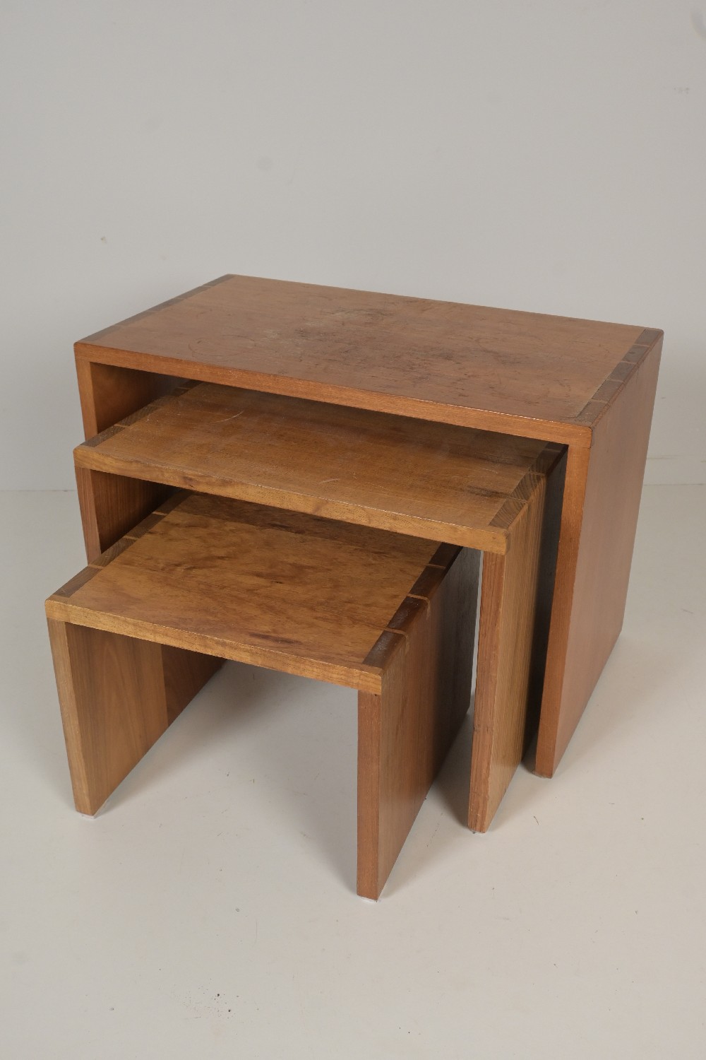A NEST OF THREE BLACKWOOD MCM SIDE TABLES 35H X 49W X 28D (LEONARD JOEL DELIVERY: MEDIUM)