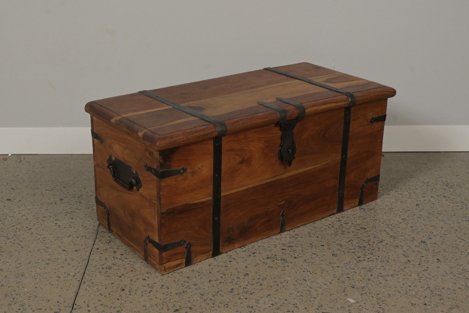 AN EARLY 20TH CENTURY BRASS BOUND TRAVELLERS TRUNK (38HX 82W X 39D CM) (LEONARD JOEL DELIVERY: LARGE)