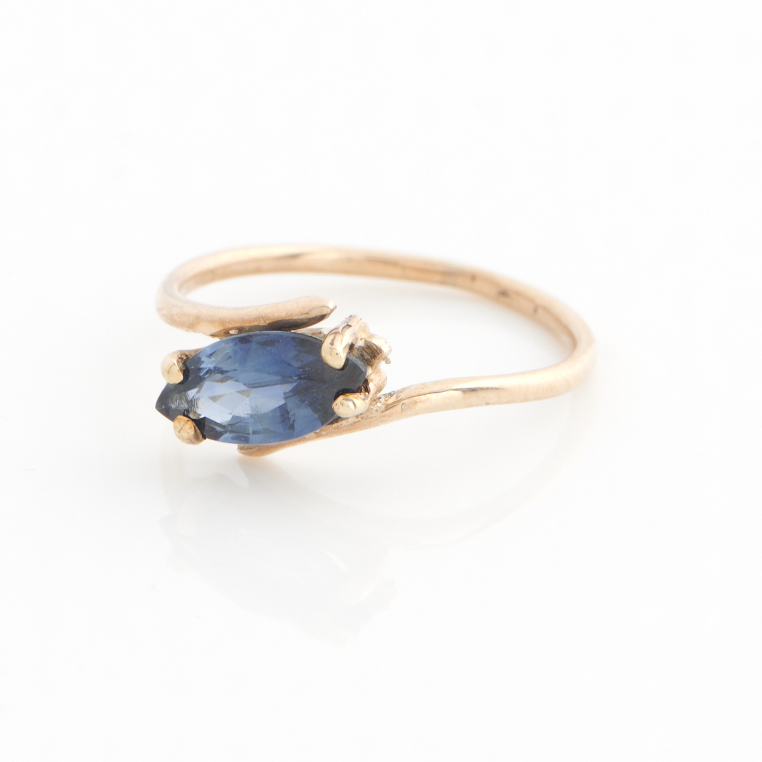 A BLUE TOPAZ RING IN 9CT GOLD, SIZE E, 0.77CMS
